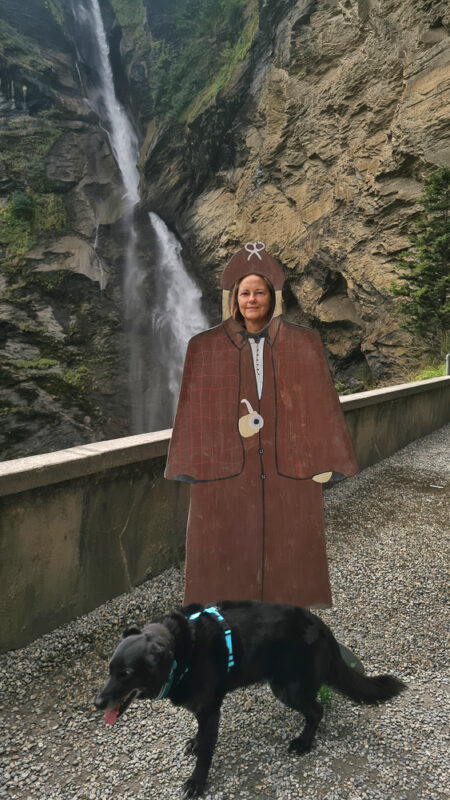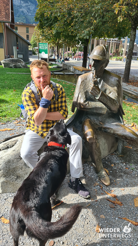 An Sherlock erinnert direkt in Meiringen eine Bronze-Statue (natürlich mit versteckten Rätseln) und das Sherlock Holmes Museum. Dazu kosten wir auch die zuckersüße Meringue, die angeblich hier von einem italienischen Zuckerbäcker erfunden wurde. In einer Kirche wurde die Holmes-Wohnung aus der Baker Street in London nachgestellt, wir haben hineingeschaut!