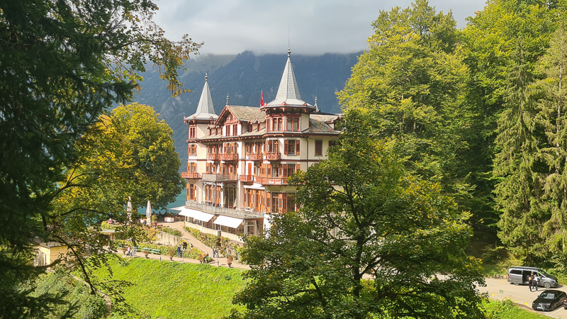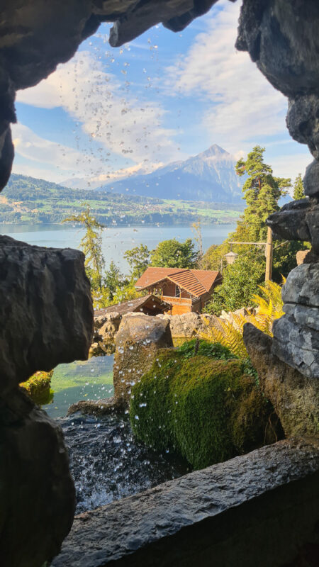 Vom Campingplatz Aareg unternehmen aus wir eine gemütliche Wanderung zu den Giessbachfällen. Was nur als kurzer Nachmittags-Ausflug geplant war, entpuppt sich als regelrechtes historisches Highlight für mich. Der bildschöne Wasserfall ist nämlich schon seit dem 19. Jahrhundert ein Naturschauspiel für die Besucher – das Grand Hotel und die dazugehörigen Nebengebäude im gepflegten Park machen daraus aber ein historisches Ambiente mit ganz besonderem Flair. Schon der erste Blick auf das Hotel über dem Thunersee begeistert mich.