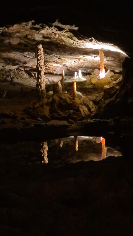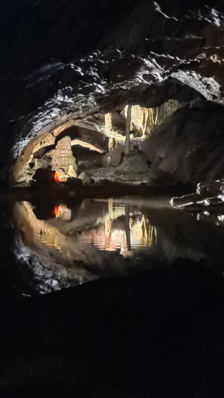 Von unserem Campingplatz Manor Farm am Thunersee fahren wir mit dem öffentlichen Bus (Gratis mit der Interlaken Gästekarte) direkt zur Station Beatushöhlen. Dort wartet mal ein ganz anderes Erlebnis auf uns: Das Höhlensystem oben am Berg führt einen Kilometer durch das Gestein – dabei kommen wir nicht nur an Stalaktiten und Stalagmiten vorbei, sondern auch an unterirdischen Wasserfällen und kleinen Bachläufen sowie Schluchten und einer Tropfsteinhalle vorbei!