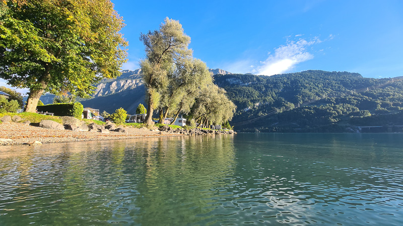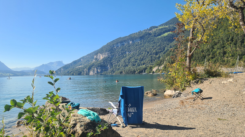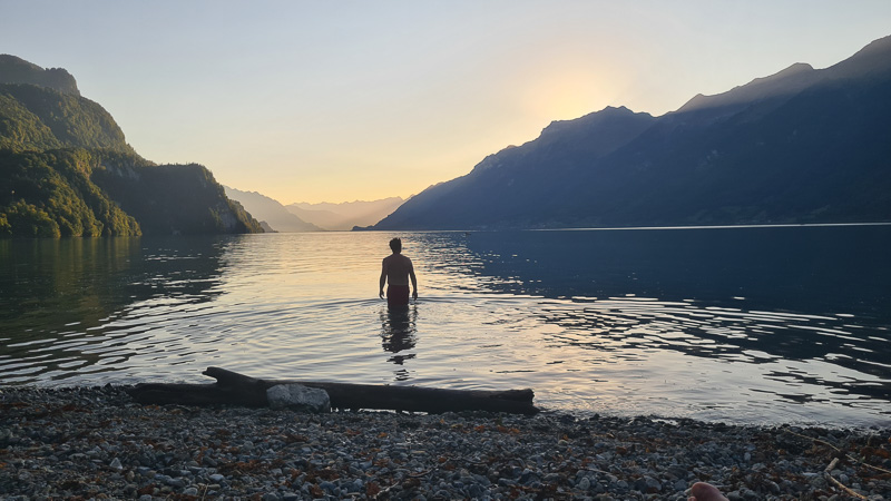 Zwischen Interlaken liegen sie so verlockend, dass ich persönlich ja an jeder Stelle sofort hineinspringen könnte: der Brienzersee im Osten, dessen türkises Wasser fast ein bisserl an einen Bergsee in Patagonien erinnert, und der Thunersee im Westen, nicht weniger verlockend und ebenso supersauber. An beiden Seen gibt es recht viele öffentliche Badeplätze, wo man mit dem Campervan unkompliziert für einen Badestopp stehen bleiben kann!