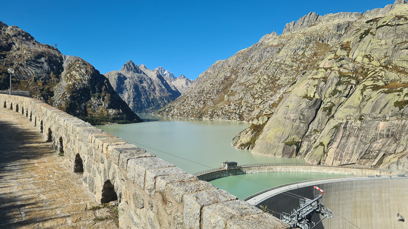 Für Camper ist allein schon die Zufahrt zum historischen Alpinhotel Grimsel Hospiz ein kleines Abenteuer. Das Grimsel Hospiz wurde bereits 1142 als erstes Gasthaus der Schweiz urkundlich erwähnt und diente den Säumern als Zufluchtsort. Als 1929 die Stauseen entstanden, versank das alte Hospiz im Wasser – der Neubau auf dem Hügel wurde 1932 als erstes elektrisch beheizbares Hotel Europas eröffnet. Heute thront es über dem türkisblauen Grimselsee im Herzen einer der größten Wasserkraftanlagen der Alpen. Die Kraftwerke Oberhasli betreiben hier 13 Kraftwerke mit acht Speicherseen!