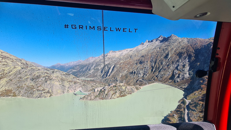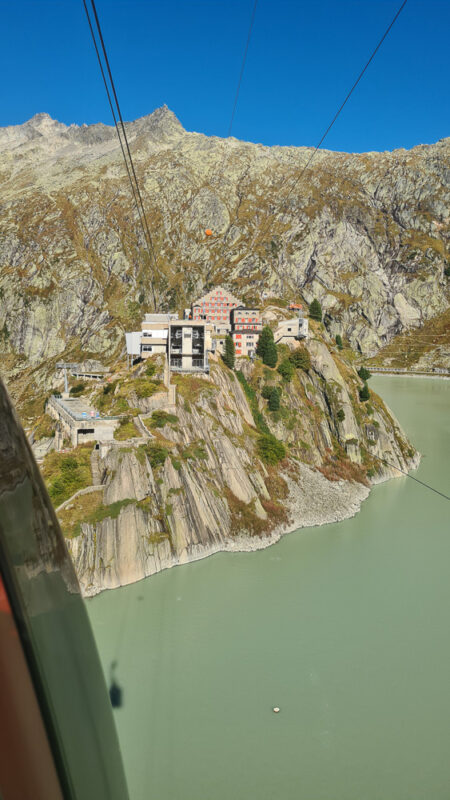 Gleich acht (!) Bergbahnen erschließen die gesamte Grimselwelt-Region. Wir nehmen die Sidelhornbahn: Sie ist selbstfahrend, also scannen wir nur unser Ticket und schon steht eine Kabine für uns bereit, die wir auch noch selbst betätigen: START und los gondeln wir hinauf zum Grimselpass (wo wir auch schon mit dem Campingbus übernachtet haben am Stellplatz – Europäische Wasserscheide!).