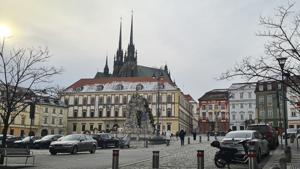 Zur Kathedrale sind wir vom Krautmarkt aus hinaufgestiegen. Der war mein absoluter Lieblingsplatz in Brünn – so schön uneben, so fein retro, eine Pestsäule wie daheim am Graben, Museen in ehemaligen Palästen aus k.u.k. Monarchiezeiten und – dominant: Das wunderhübsche, historische Jugendstil Hotel Grandezza mit angeblichen fünf Sternen, ein Traum!