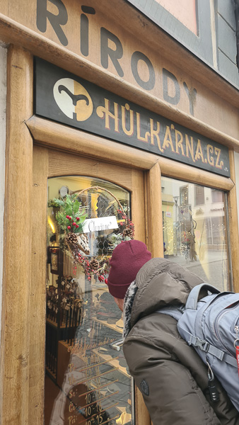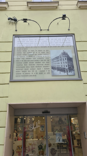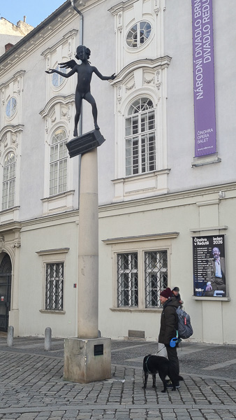 Die Brünner Altstadt ist überschaubar, aber vollgepackt mit ungewöhnlichen Geschichten. Wir starteten bei Janecek Theater und sind dan gleich zur astronomischen Uhr gewandert. Auf dem Weg dorthin kam mir immer wieder in den Sinn: Ein wenig sieht es hier aus – wie in Linz. Die schwarze, futuristische Skulptur aka besagte Uhr sieht leider aus wie eine überdimensionale Gewehrkugel. Die Einheimischen nennen sie liebevoll „Špačkův orloj“ (Špačeks astronomische Uhr), um 11 Uhr kann man durch die kleine Schlitze reinschauen und es dürfte täglich ein anderes Bild projiziert werden. Wir haben es uns in der Touristinfo gleich um die Ecke zwar erklären lassen, aber naja. Da die Menschen für 11 Uhr dort bereits für dieses kleine Spektakel angestellt (!) waren, ist uns dasselbe leider entgangen.