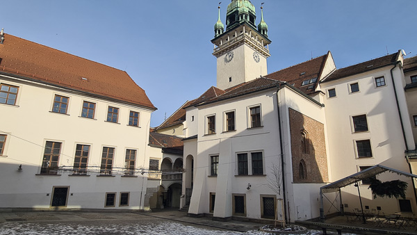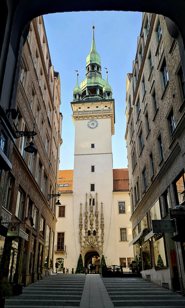 Den Rathausturm kann man besteigen – allerdings mit stolzen 180 Stufen. Die Aussicht soll gut sein, wir haben’s ausgelassen, weil eh schon wissen: Es sollte ein gemütlicher Tagesausflug nach Brünn sein, außerdem hatten wir Hund Coffee mit dabei.