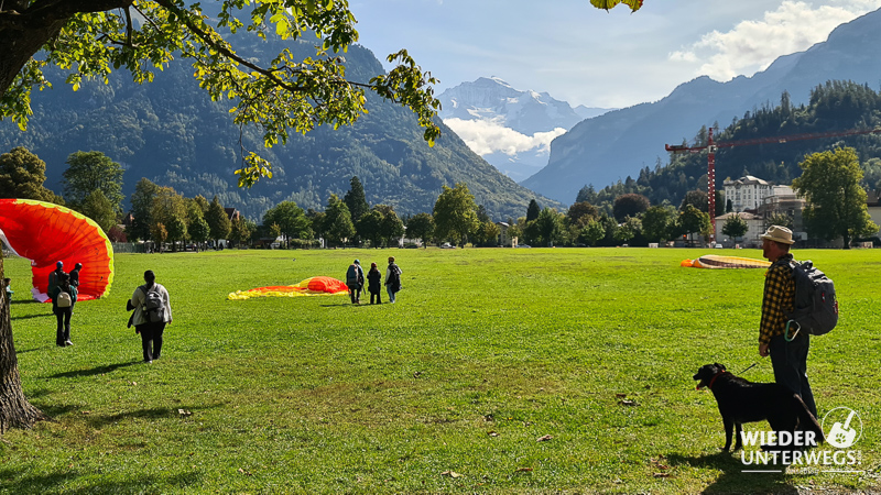 Direkt an der Höhematte thront das Victoria Jungfrau Grand Hotel & Spa mit seinen Belle-Époque-Balkonen. Heute landen hier auf der riesigen Wiese die Gleitschirmflieger und oft beobachten wir auch spielende Hunde, die von den asiatischen TouristInnen fast so oft fotografiert werden wie die Jungfrau.