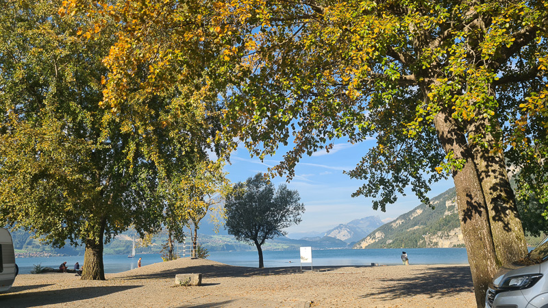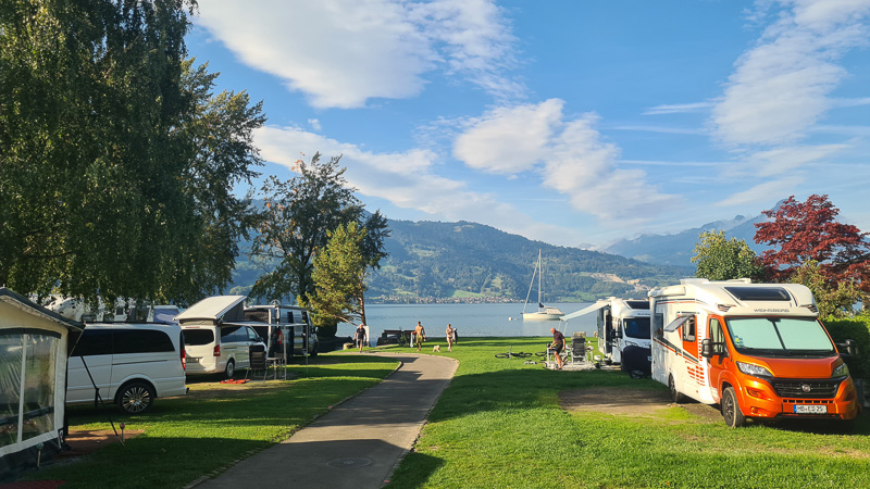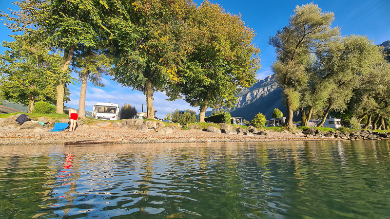 Der ganzjährig geöffnete Campingplatz liegt direkt an der Busstation, in kurzer Gehentfernung zum Schiff nach Interlaken und besteht eigentlich aus drei Teilen: Zwei davon liegen direkt am Thunersee (einmal mit schottrigem und einmal mit Gras-Strand), die große Campingwiese liegt jenseits der Bundesstraße. Das Restaurant wurde von unseren Campingnachbarn sehr gelobt, das großzügige, zentrale Sanitärgebäude bei der Einfahrt ist hochmodern und spielt alle Stückerln! Gleich beim Check-In werden alle Fragen bezüglich ÖV-Transport proaktiv beantwortet – die Gästekarte beinhaltet hier auch teils Zug- und Schifffahrten zu den Ausflugszielen und nach Interlaken West. Danke für den supernetten Aufenthalt und den guten Schweizer Cidre aus eurem Shop.