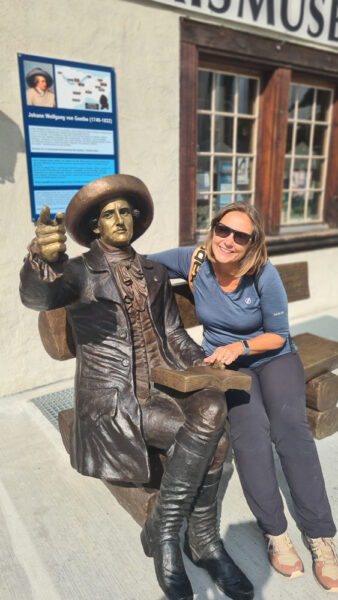 Direkt davor sitzt Johann Wolfgang von Goethe, zumindest in Form einer Statue. Der Dichter war 1779 selbst hier unterwegs und schwärmte von der wilden Landschaft des Berner Oberlands. Noch heute gilt er als einer der frühen „Influencer“ für die Schönheit dieser Region.