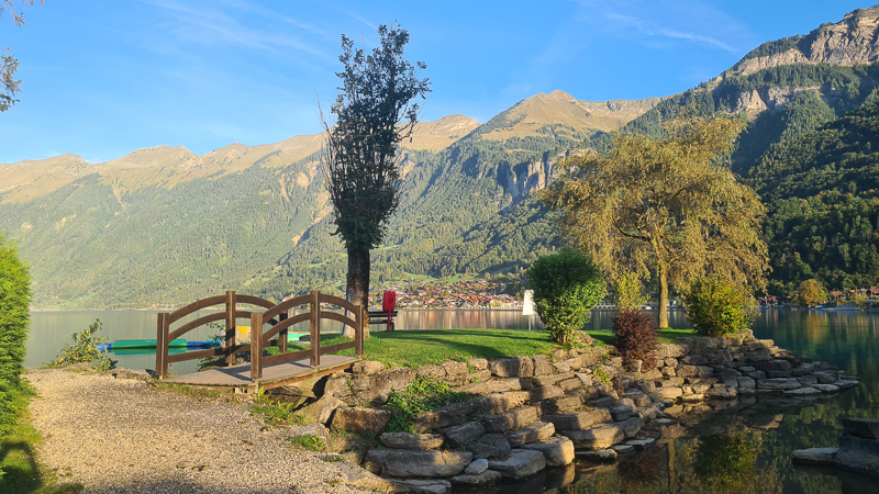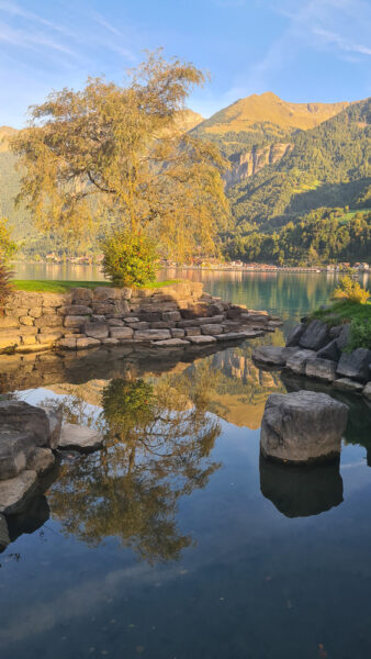 Interlaken verdankt seine besondere Lage den beiden Seen, die unterschiedlicher kaum sein könnten. Der Thunersee im Westen zeigt sich tiefblau und von mildem Klima geprägt – hier gedeihen Reben, Palmen und sogar Feigenbäume (gesehen in Spiez).