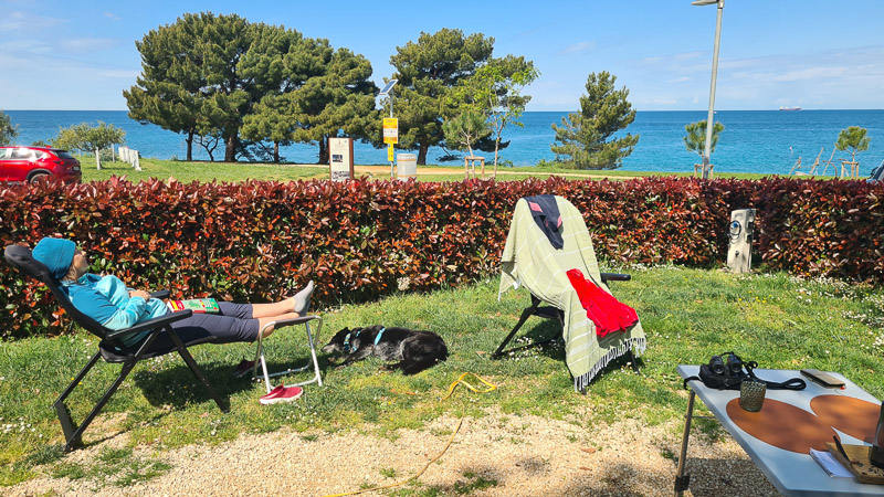 Wir waren zum Ancampen im Frühling auch schon mal gleich um die Ecke von Savudrija, in Umag am riesigen Camping Umag. Zur Nebensaison im April ist auch er herrlich – und uns hat unser Stellplatz direkt am Wasser neben der Hundestrand Zone sehr gut gefallen. Hier weiterlesen: Camping Umag mit Hund und Hundestrand.