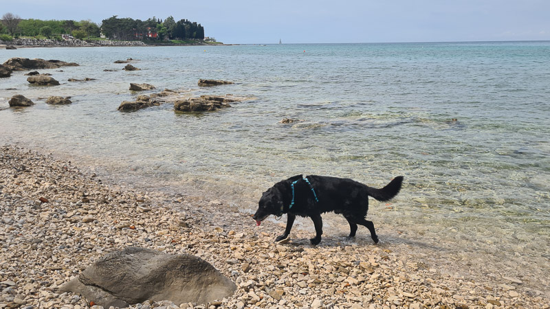 April also. Camping-Vorsaison in Kroatien. Hundeglück. Und uns freut´s auch, denn im April fahren wir meist nach Kroatien zum “Ancampen” und auch gleich “Anbaden”. Kann man machen, muss man aber nicht. Im Jahr zuvor waren wir zur gleichen Zeit am Campingplatz mit Hundestrand Aminess Sirena in Novigrad und dort quasi sonnen- und wärmeverwöhnt beim alljährlichen Anbaden. Gleich am ersten Tag nach Ankunft gabs da für uns kein Halten. Das Anbaden beim Lighthouse Camping Savudria ein Jahr danach war ungleich frostiger. Falls es wen interessiert. Aber wir waren trotzdem im Wasser, bei frischen 14 Grad (Wasser).