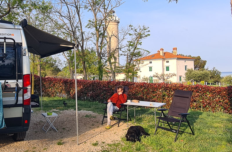 Der Campsite Lighthouse liegt jetzt nicht direkt an einem superdruper Badestrand, dafür gleich neben dem nördlichsten, noch aktiven Leuchtturm der Adria. Und direkt am Meer. Und beim angrenzenden Campingplatz Savudrija* von Istra Camping gibts jede Menge Badezugänge inklusive Hundestrand.