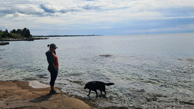 Wir waren im April entlang des gesamten Nachbar-Campingplatzes (offizieller Pfad entlang des Meeres) mit dem Hund unterwegs und haben viele Strände gefunden, in der Nebensaison für Hund und Mensch passend – auch für unser Picknick