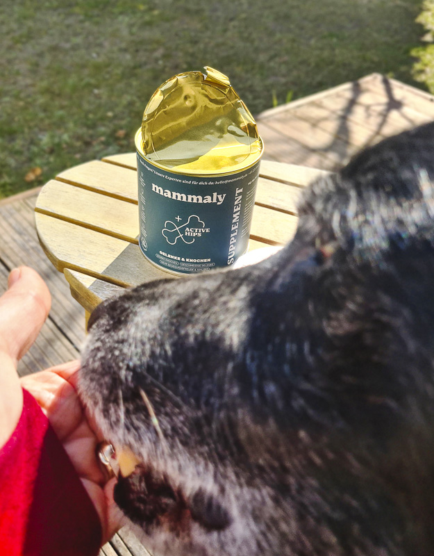 Grund genug, um die ACTIVE HIPS Produkte für Senior-Hunde von mammaly mal zu testen, ob sie ihm gut tun. Zeit für Supplements auch für Hunde.