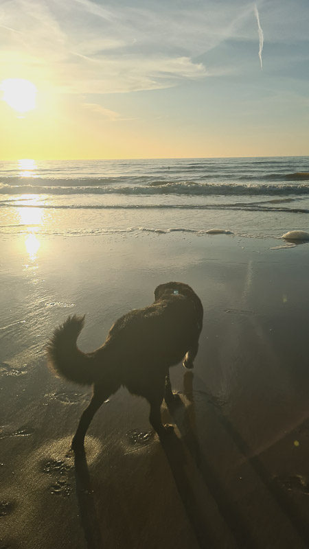 Für Hundebesitzerinnen wie mich hat der März (so wie die gesamte Nebensaison) noch einen weiteren Vorteil: An den Stränden rund um Noordwijk können Hunde auf fast allen Strandabschnitten frei laufen. Und dann gibt es in Noordwijk natürlich auch noch den von mir bereits vielgerühmten Hundestrand – hier dürfen Coffee und Friends das ganze Jahr über ohne Leine frei laufen. Unvergleichlich.
