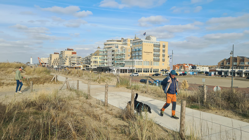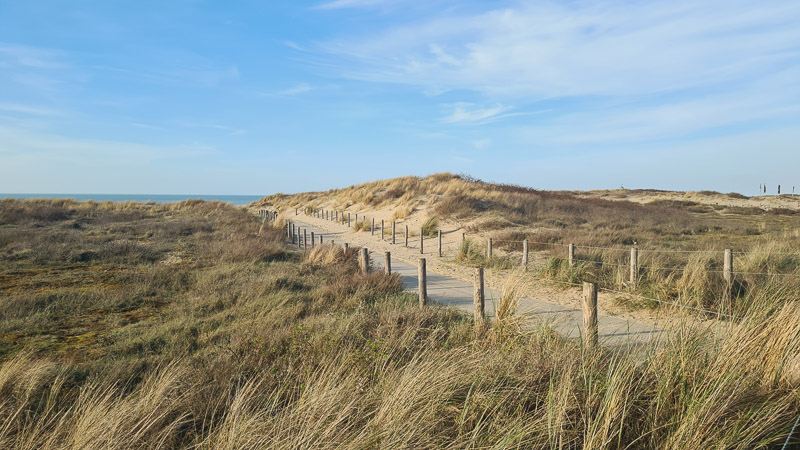 Hunde sind ausdrücklich willkommen – bis zu zwei pro Bungalow. Vom Ferienpark gehts über die Straße und dann: Der direkte Weg durch den Waldstreifen zu den Dünen und weiter an den Strand ist ein schöner Nachmittagsspaziergang, wenn man vielleicht danach zum Sunset im Pavillon Zeespiegel abhängen will. Wir wollten.