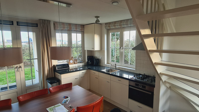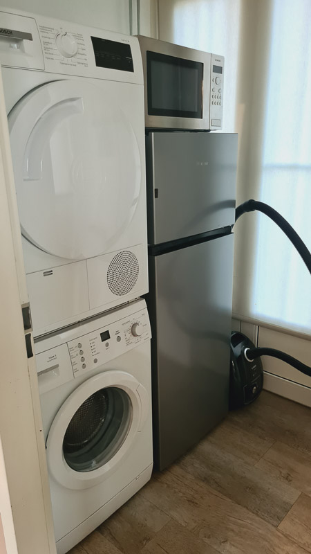Viel Platz für uns im Wohnzimmer und in der Küche, eine tolle überdachte Veranda (für den Freiluftfanatiker Sir Coffee), Grünzeug und Hecke rundum und ein eigener Parkplatz beim Haus. So könnte man unseren ersten Eindruck von unserem Ferienhaus in Noordwijk zusammenfassen. Noch dazu ein extra Kammerl mit einem zusätzlichen riesigen Kühlschrank (das Haus ist nämlich für sechs Personen ausgerichtet), Waschmaschine und Trockner. Und da wir lange in den Niederlanden unterwegs waren, haben wir uns sogar über die komfortable Waschmöglichkeit gefreut.