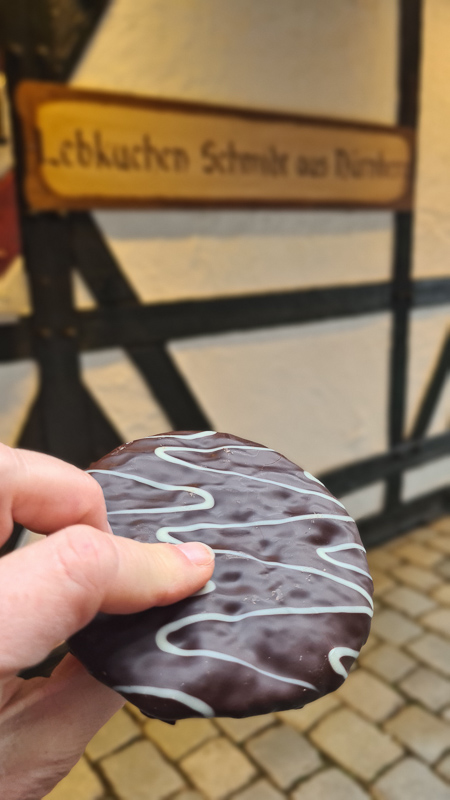 - Frischer Lebkuchen bei Schmidt – nur hier wird noch am Stand frisch gebacken, der Duft zieht dann durch die halbe Altstadt