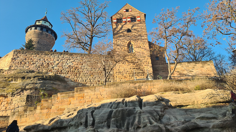 Bei meinem Citytrip durfte ich die auf Sandstein gebaute (!) Kaiserburg bei sonnigem Kaiserwetter erklimmen: Rechterhand beim Aufstieg liegen die ehemaligen Stallungen, heute ein beliebtes und innen wunderbar gestaltetes Hostel mit Traum-Ambiente und direkt neben dem fünfeckigen Turm. Der Ausblick über Nürnberg lässt sich auf zwei Seiten genießen, in den inneren Burghöfen (freier Zugang) ist zu jeder Zeit was los.