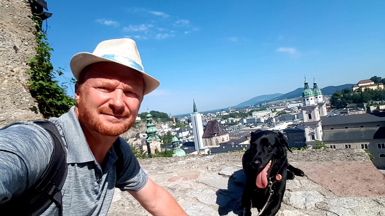 Während ich atemlos bei meiner ersten Salzburger Festspiele Eröffnung dabei sein und Rabl-Stadler, Blom und VdB lauschen durfte, erstieg mein Begleit-Team den morgendlich kühlen Mönchsberg. Ihr Tipp: Hundefreundliche Einkehr in der Stadtalm bei den Naturfreunden.