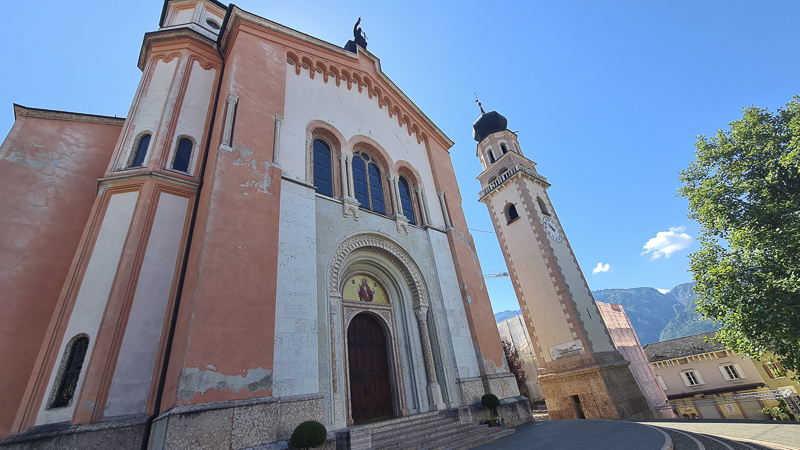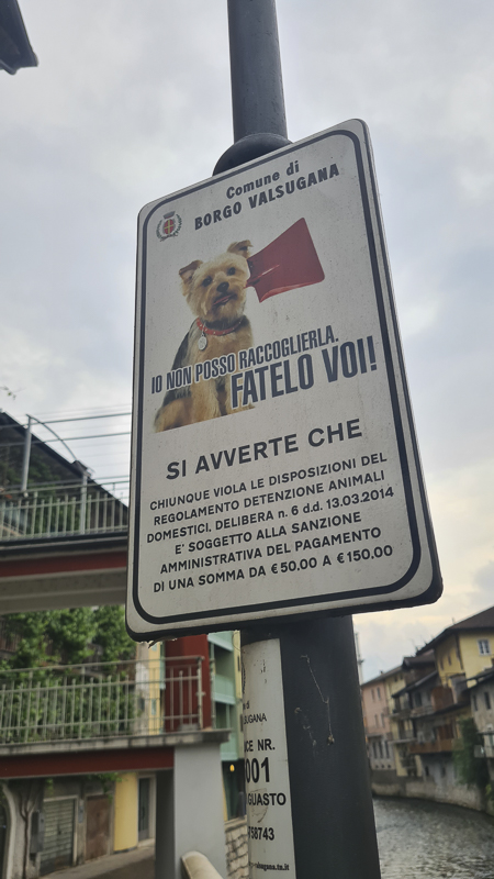 Ich bin vom Fleiola Camping auf einem wunderbaren Radweg nach Levico geradelt, hervorragend ausgeschildert, fast immer von der Straße getrennt und zu einem großen Teil durch die weitläufigen Obstplantagen des Valsugana. In Levico Terme selbst gehts bergan zur Fußgängerzone, zum historischen Örtchen, dem Kurpark und dem Grand Hotel – der monumentalen Kirche, wunderschön! Entlang der Oberstraße reihen sich ehemalige Grand und Kurhotels aneinander, dann kommt die neue Therme und das Touristeninfozentrum mit besagter Dogfriendly Valsugana Broschüre – vorbei am schönen Turm und dann bergab zum Levico See. Ich fühlte mich fast so heimisch wie im Ausseerland hier….