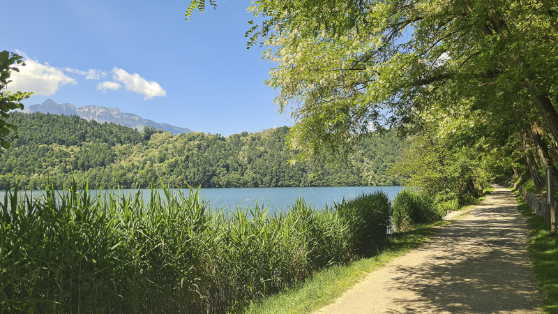 Nur 15 Minuten nördlich liegt der Lago di Serraia: Glasklar, klein, ruhig, mit naturbelassener Wiese und keiner hat was gegen Hunde am See. Wir haben dort gepicknickt, geplantscht und einfach nichts gemacht. Auch das gehört zum Valsugana – stehen bleiben, wo’s am schönsten ist.