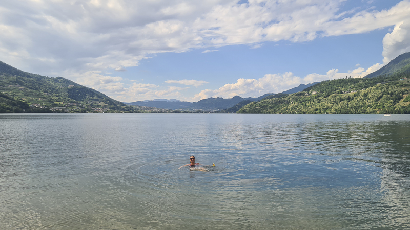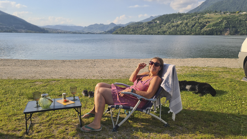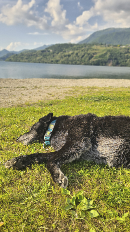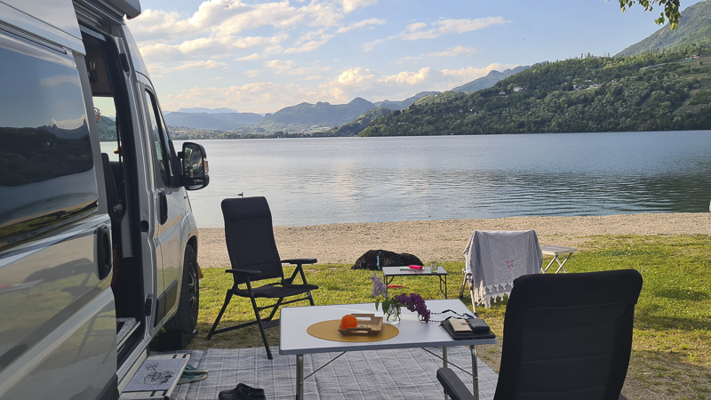 Mein schönster Campingplatz am Caldonazzosee im italienischen Valsugana Tal war nicht nur menschen- und hundefreundlich, sondern vor allem ganz direkt am See gelegen. Vom Stellplatz gleich in den See und in den Fluss hüpfen, optimal für Hund Coffee und mich.