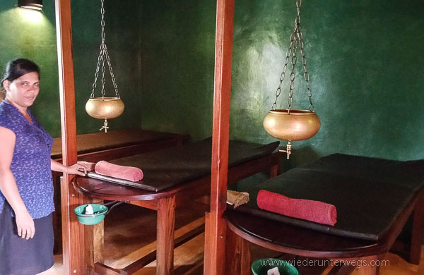 TIPP: Anrufen und sich abholen lassen – unbedingt Termin vereinbaren. Ca 8 Min. Autofahrt vom Jetwing Beach Hotel entfernt. Wir hatten das Package um 30 € inkl. div. Öl Massagen, Dampfbad, Blütenbad und Stirnguss :-)