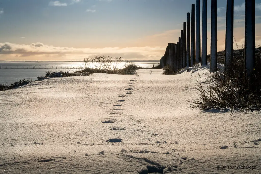 Mein persönliches Highlight meiner Zeit auf Sylt war ein morgendlicher Spaziergang entlang des Küstenwanderweges auf der Wattseite zum Naturstrand. Das lag aber auch daran, dass es in der Nacht geschneit hatte und die ganze Insel durch den weißen Flaum wie verzaubert aussah. Zusammen mit dem diffusen Licht der aufgehenden Sonne war ich wirklich verzaubert.