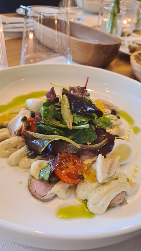 Normalerweise bin ich unterwegs bekennende Selbstversorgerin. Umso mehr genieße ich es, mich diesmal mitten in Altaussee kulinarisch verwöhnen zu lassen: Michelin Guide hin, Gault Millau her – beim Lokal Fine Dine by Stefan Haas (und seiner Gattin Juliane) hab ich keine Skrupel, in solch ein mehrfach ausgezeichnetes Lokal im – sagen wir mal “Casual Wander-Style” – hineinzuschneien. Im Gegenteil: Es ist so gemütlich und herzlich, dass ich mich ab der ersten Minute wohlfühle. Stefan werkt in der Küche, Juliane ist nicht nur Sommelière, sondern auch perfekte Gastgeberin, die uns durch das lukullische Mahl führt. Mein Highlight an diesem Abend: Die feine Apéro- und Weinbegleitung zu einem mehrgängigen Menü absolut alkoholfrei, aber so wissend gewählt, dass hier keine den Alkohol vermisst.
