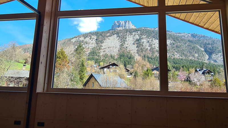 Das Ausseerland dient häufig als Filmkulisse, Stichwort Dutzler-Verfilmungen. Auch die Filmteams wohnen hier in der Lodge, wenn sie drehen – Voraussetzung auch für sie: Die gesamte Produktion inklusive Unterkunft muss als nachhaltig zertifiziert sein. Ebenso denken die Firmen, die hier ihre Events abhalten – oberhalb des Restaurants in dem Multifunktions-Raum mit der fulminanten Bergaussicht.
