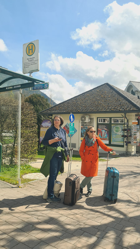 Vom Bahnhof marschieren wir mit Rollköfferchen und Rucksack etwa 20 Minuten bis zum Lewandowsky, bzw. zum Kurpark in Bad Aussee. Für uns kein Problem, für Familien mit Sack und Pack on tour wird man gut vorausplanen müssen: Man kann auf den öffentlichen Bus warten oder sich das Salzkammergut-Shuttle bestellen und zur Unterkunft chauffieren lassen (5 Routen und 110 Ziele in der Region erreichbar).