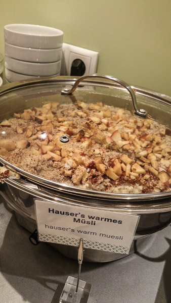 Hotel Tipp in der Welser Innenstadt: Das Boutique Hotel Hauser ist ein „small is beautiful“ Business Hotel mit einem Touch von Kunst und Kultur und mit einem großen Herzen für mitreisende Kids und – Hunde. Zur Weihnachtszeit wird man als Gast mit den selbstgebackenen Köstlichkeiten von der Oma verwöhnt und in der Lobby gibt´s frischen Kriecherlsaft – wie früher :-). Das Frühstücksbuffet bietet ebenfalls viel Selbstgemachtes: Kulinarischen Schmankerln wie Lachs Aufstrich, Kürbiskern Aufstrich, Eierspeis mit Kürbiskernen, Topfentorte und ein wunderbar mundendes warmes Haus-Müsli. Wichtig: Reichlich Tageszeitungen, danke!